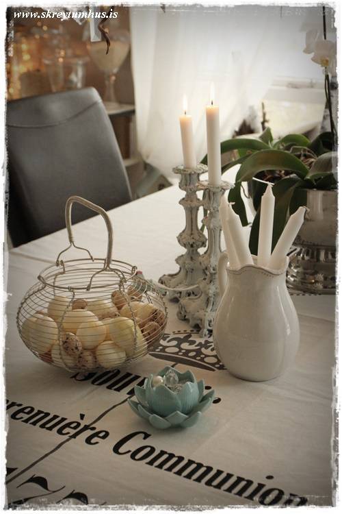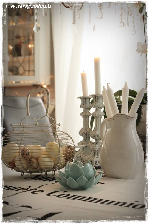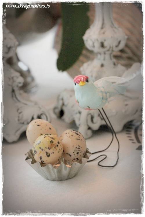 Hnuss og meððí…því fannst mér kjörið að setja upp smáskreytingar, svona til þess að ákalla vorið og kanna hvort að það heyri í mér…