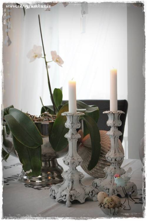 …og þessir kertastjakar hafa varla farið af borðinu síðan að ég málaði þá…