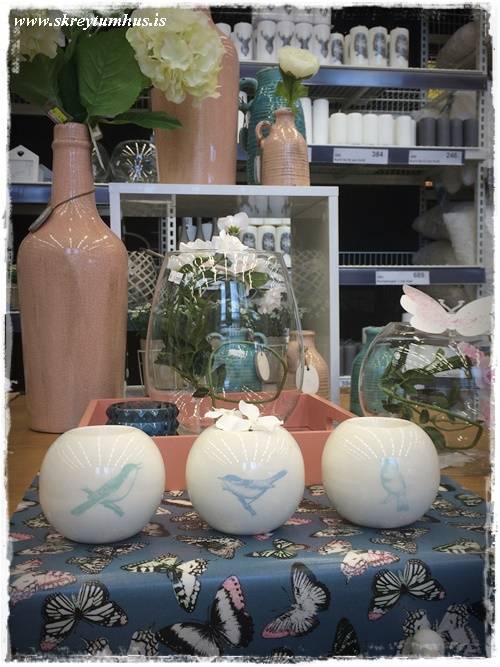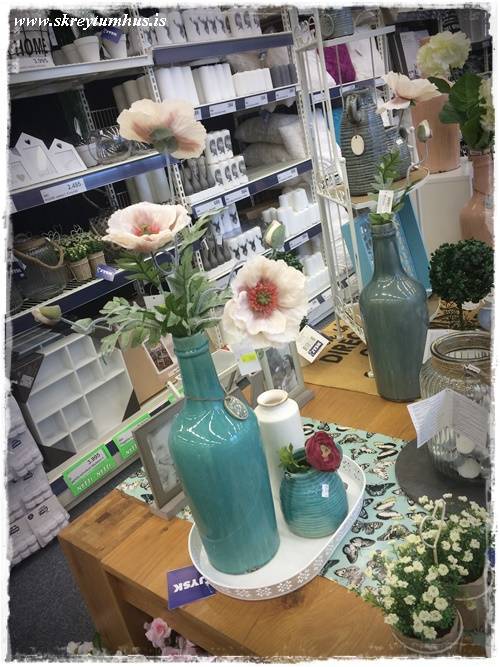 …glerkrukkan er í miklu uppáhaldi, og litlu kúluvasarnir kosta bara um 995kr, ferlega flottir í skreytingar t.d. í fermingarveislur…