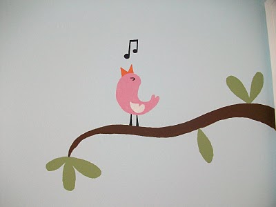 ..herbergið var málað ljósblátt og hún fékk bóndann til þess að mála myndirnar á veggina, í stað þess að panta vegglímmiðana frá PBK (sniðugt sparnaðarráð!!)