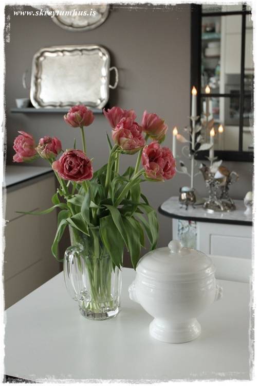 …öll þessi blóm sem þið sjáið í póstinum koma úr tveimur túlípanavöndum, en það er um að gera að skipta þeim svona upp og dreifa á milli vasa kanna…