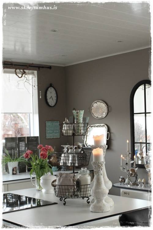 …og þau gefa svo fallegan lit inn í eldhúsið – með þessum blágræna sem mér þykir svo fallegur…
