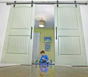 Flott hugmynd…ég hef ekki séð svona en ég fann þetta fyrir þig í staðinn http://www.jarngler.is/rennihurdar.html