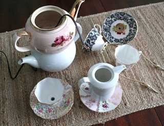 Ég sá einhverstaðar líka bollassett sem hékk uppí lofti með ljósaperu, sætt lítið loftljós. Man bara ekki hvar é grakst á það.