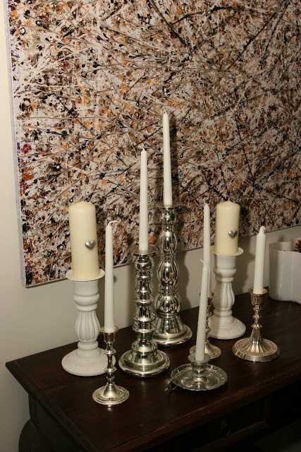 ….og svona í anda sameingar að sameina þónokkra kertastjaka á mjóa borðinu í staðinn
