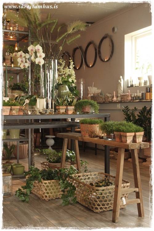 Ég verð bara að segja að ég átti varla orð til í þessari heimsókn, yfir fegurð búðarinnar. Mér leið eins og einhver hefði farið inn í hausinn á mér, og sótt drauma blómabúðina mína þangað. Þessa sem að blómaskreytirinn sem býr innra með mér þráir að eignast og sinna…