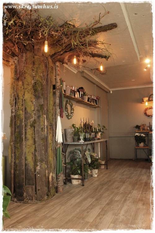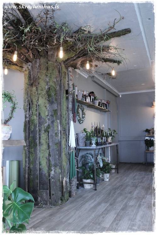 …en það er einmitt þetta dásamlega tré sem hefur verið reist í miðri búðinni. Árstíðatréð sem er skreytt á mismunandi hátt eftir árstíma…
