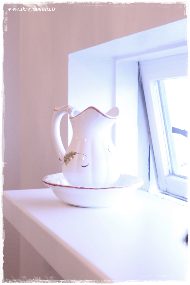 …í glugganum eru svo bara blóm og kanna og skál sem frænkan átti fyrir…