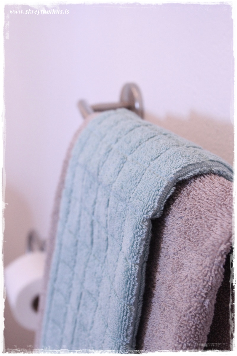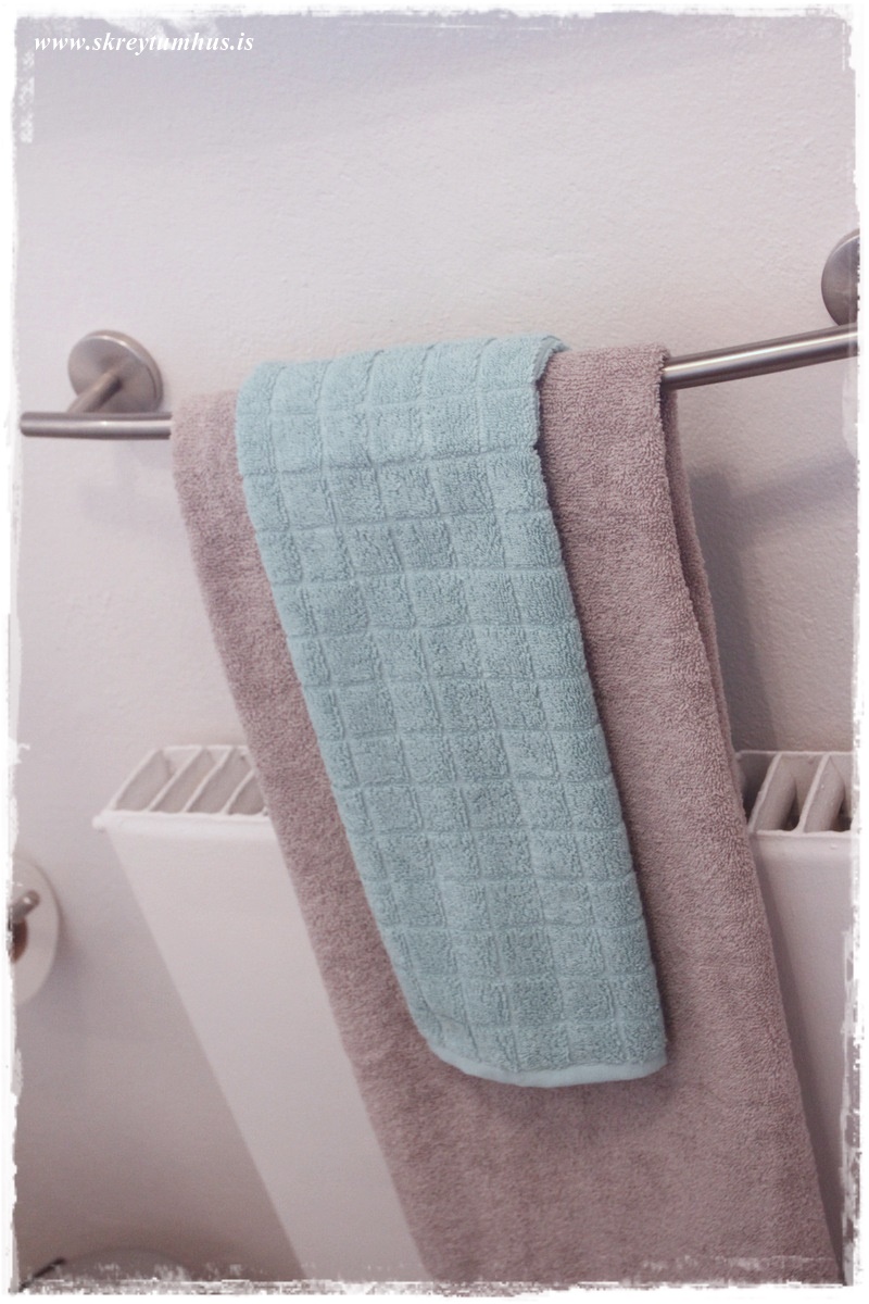 …handklæðasláin úr Baushaus, og snilld að hafa hana yfir ofninum, og þá verða handklæðin hlý og notaleg þegar að maður kemur úr baði…