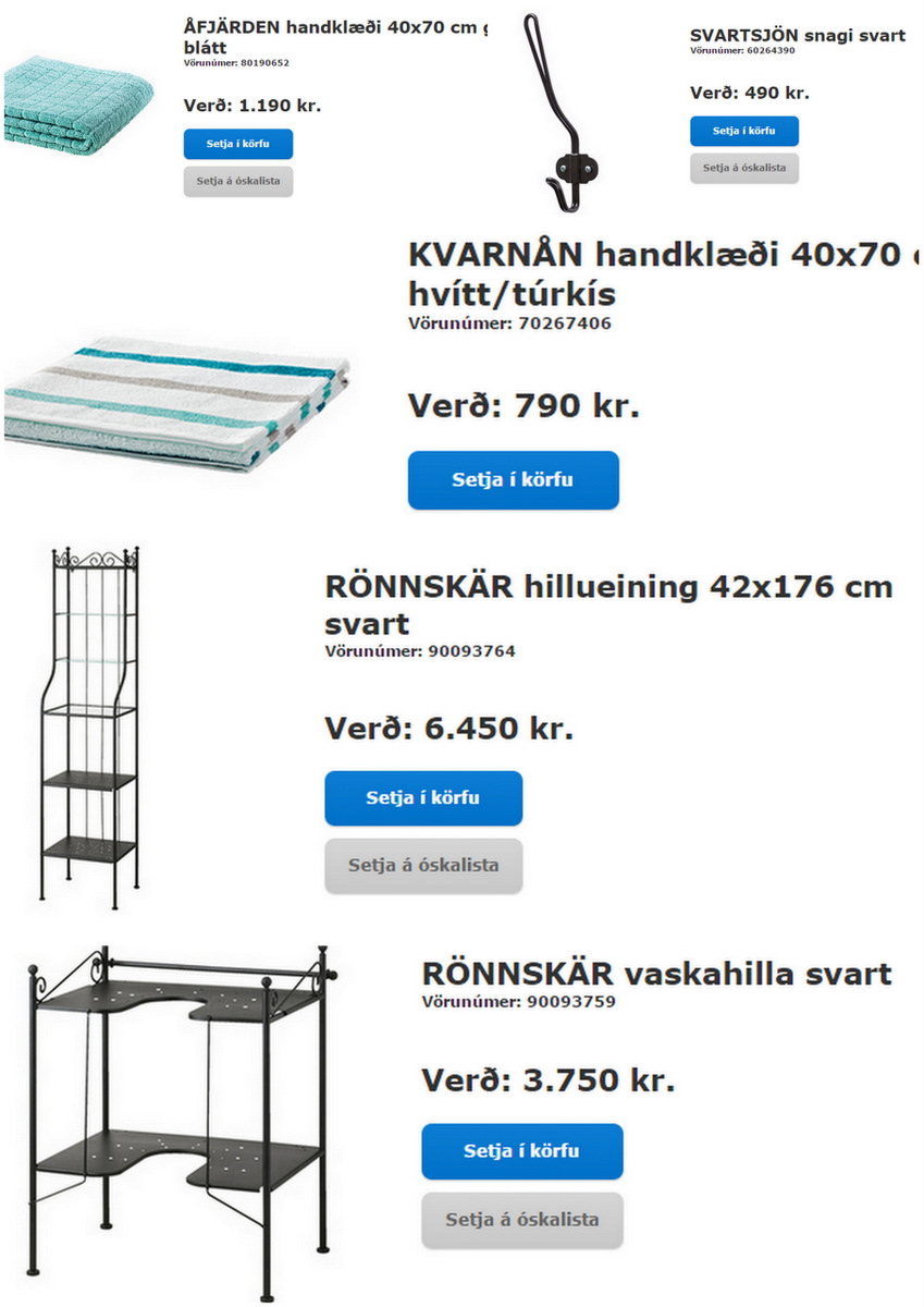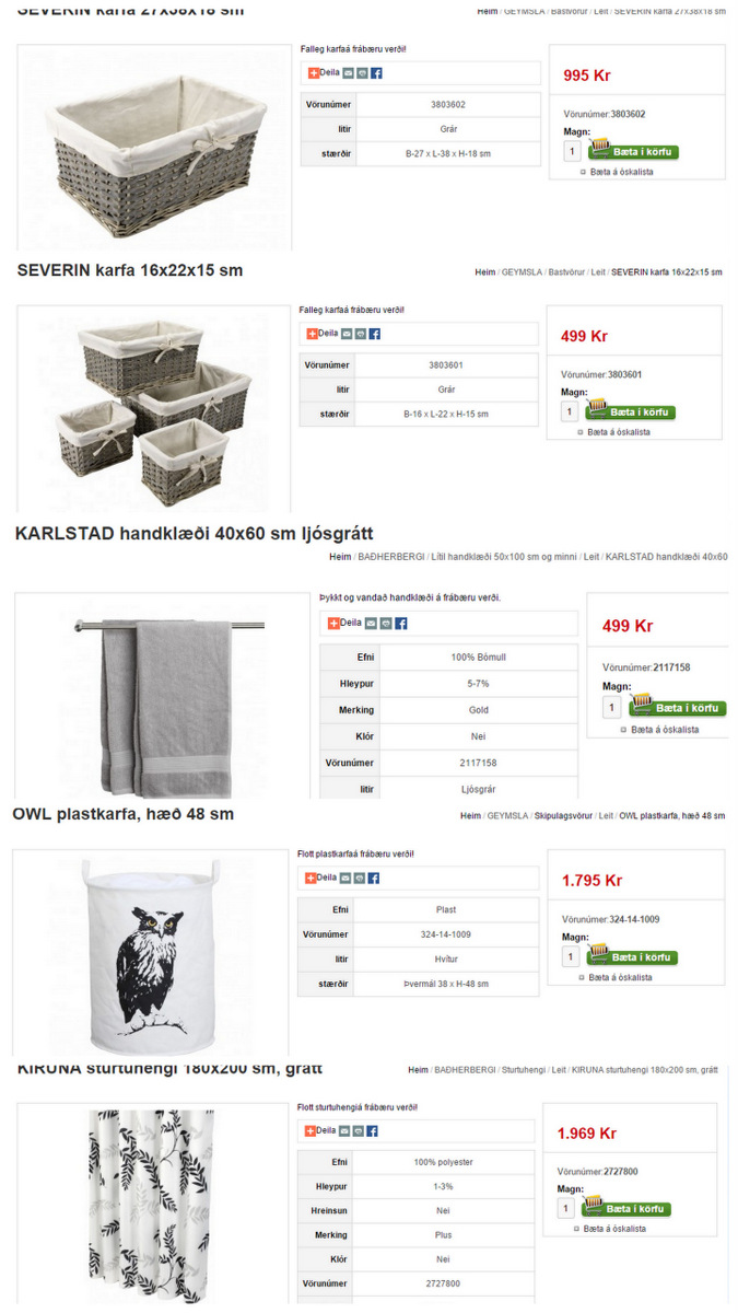 …hjá þeim færeyska fann ég körfur, handklæði, taupoka, sturtuhengi og skrautmuni…