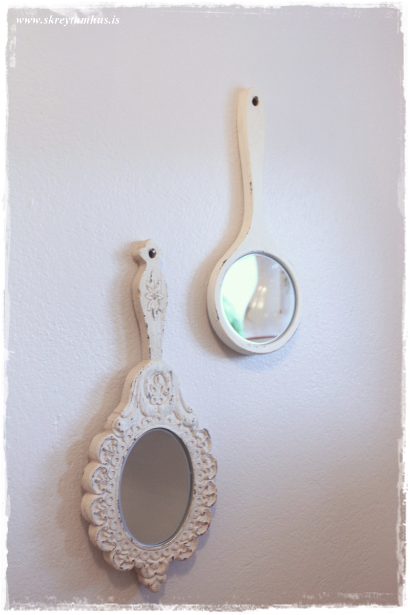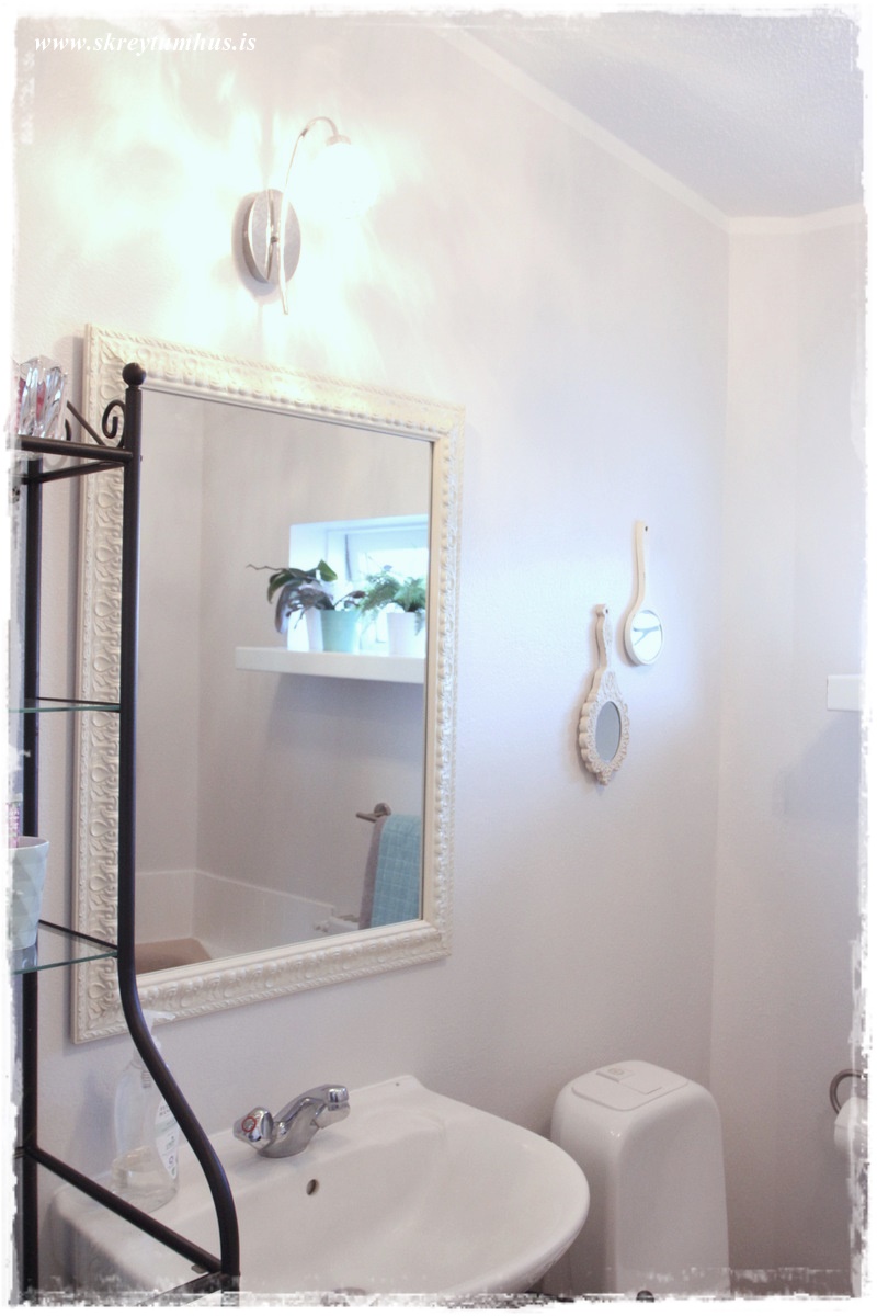 …veggirnir voru málaðir í fööööööölgráum lit, s1002r frá Slippfélaginu, svona til þess að fá smá meiri hlýleika og karakter – vildi alls ekki hafa alveg hvítt.  Speglarnir eru úr Litlu Búðinni minni…
