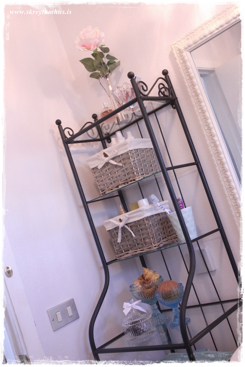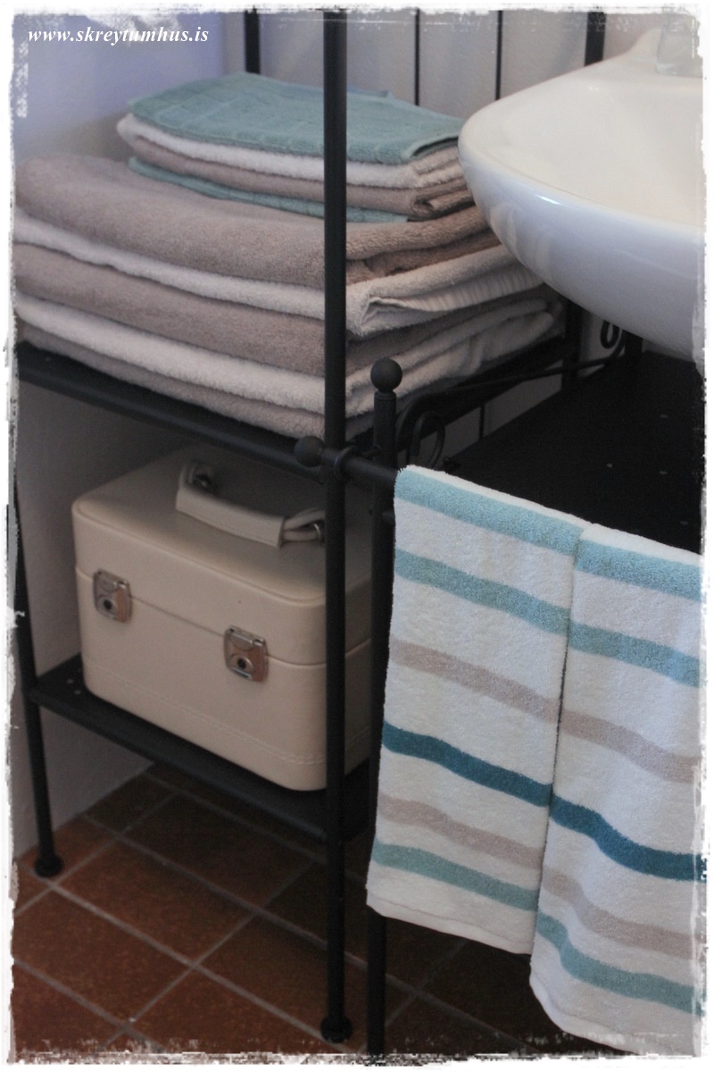 …það er slá framan á, sem hægt væri að setja blúndu eða eitthvað fallegt efni á, en ég setti bara handklæðin þarna.  Skemmtileg leið til þess að breyta auðveldlega út…