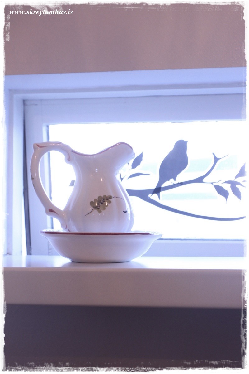 …í gluggann setti ég síðan vegglímmiða úr Söstrene, bara svona til þess að fá meiri prívat og líka bara upp á fegurð 🙂