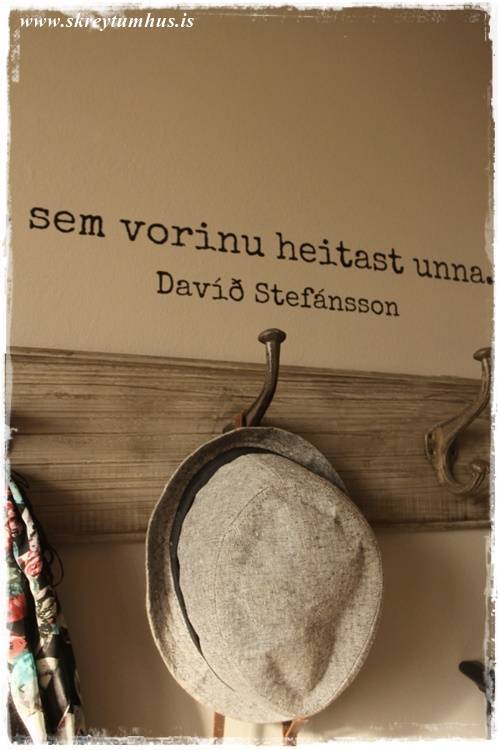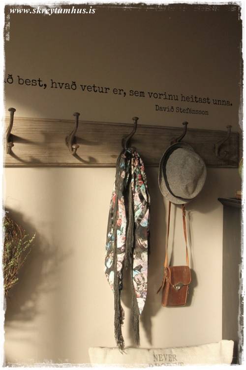 Þessi lína setur nú alveg punktinn yfir i ið á forstofunni, dáist af því hvað þú ert framtaksöm þú gerir hlutina ég er alltaf að hugsa um þá en svo gerist kannski lítið ætla að taka þig til fyrirmyndar og laga nú forstofuna og ýmislegt fleira sem ég er alltaf alveg að fara að gera.