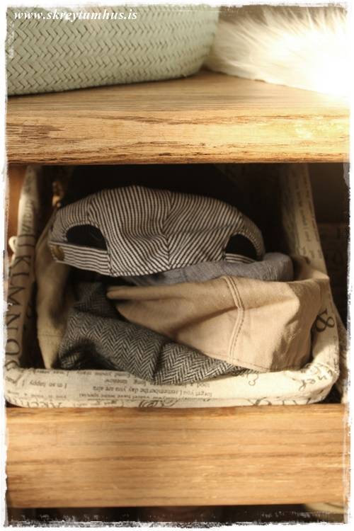 …og svo alla þessa!  Hann er sko hattafrík og af þeirri ástæðu eru sko sérkörfur fyrir hatta og húfur undir bekknum…