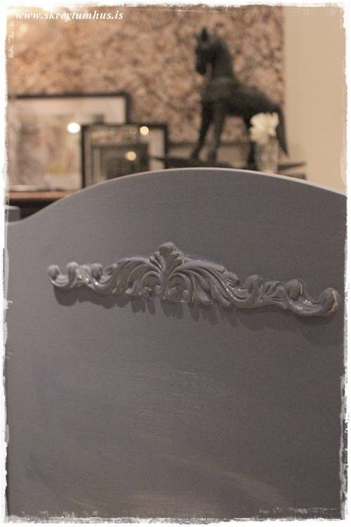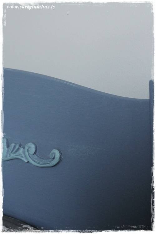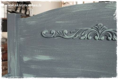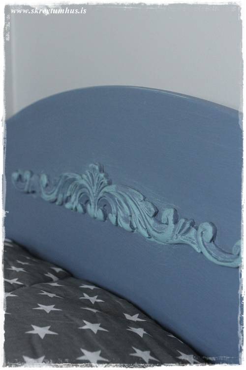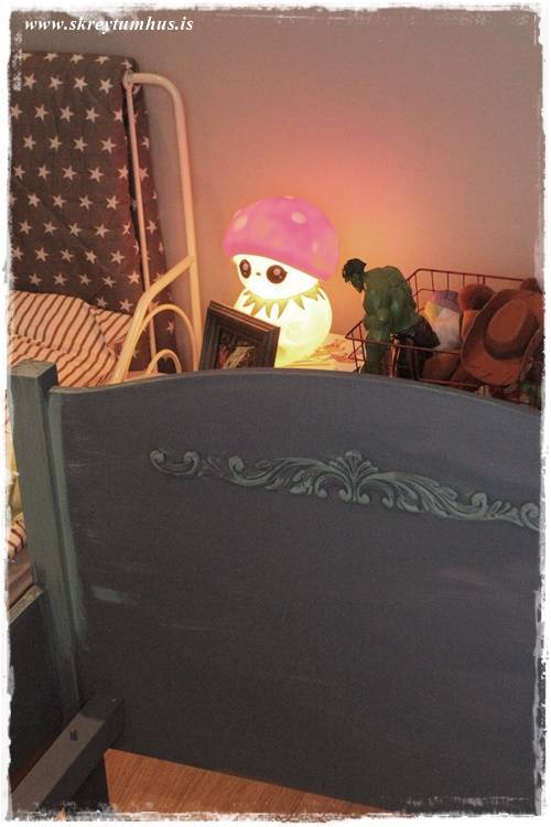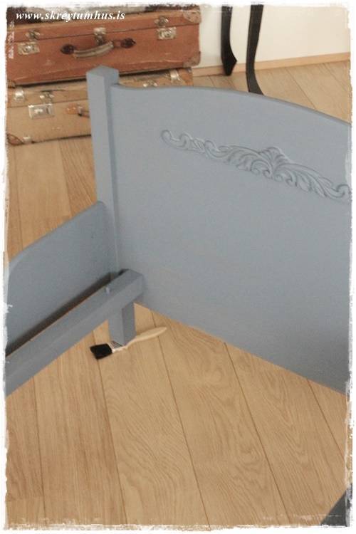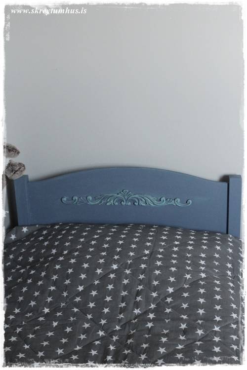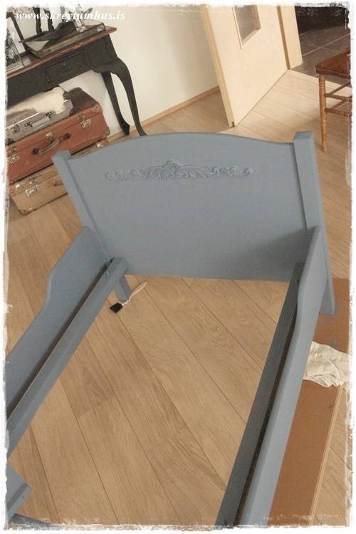 …ég notaði síðan kalkmáningu frá Martha Stewart sem ég fékk í Föndru og málaði bara beint á rúmið.  Enginn grunnur og ekkert púss…
