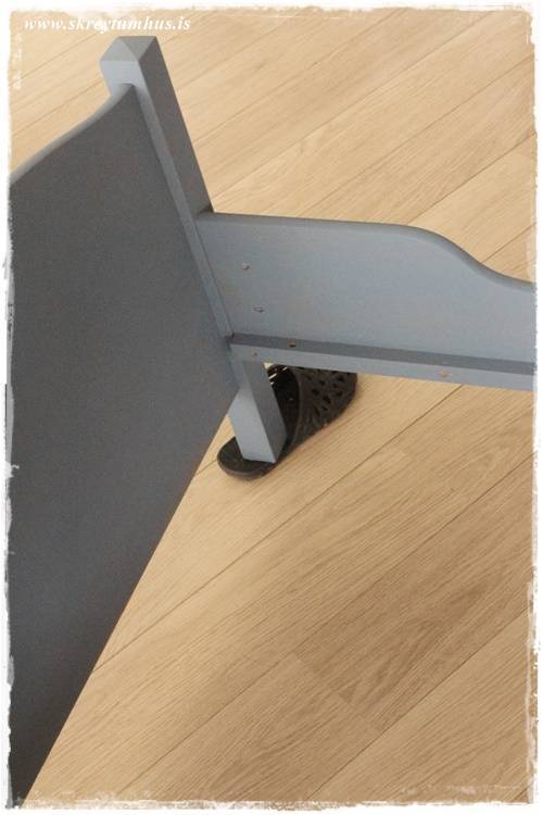 …ég beið því eftir að rúmið þornaði, daginn eftir.  Endilega takið eftir fagmannlegum vinnubrögðum frúarinnar, pensill undir einum fæti…