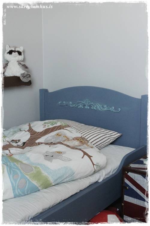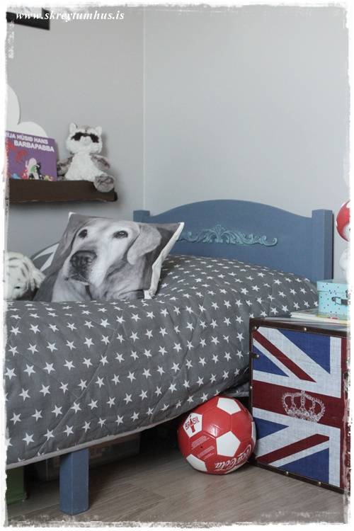 Þetta kemur hrikalega flott út, en er sammála…höfðagaflinn má vera hærri. Get trúað því að litli maðurinn sé mjög ánægður með hann Blámann sinn 🙂