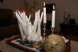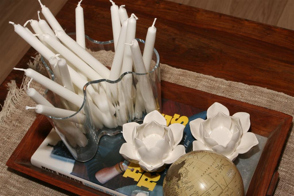 …hér eru bara hvít kerti notuð, en þá var of mikið að vera með logandi kertin við hliðina þannig að þau voru fjarlægð