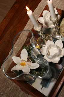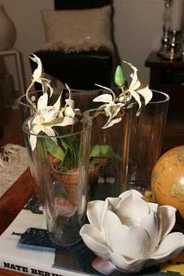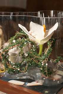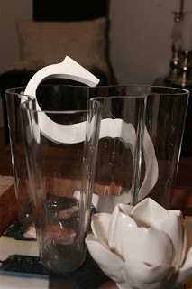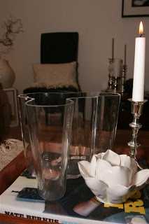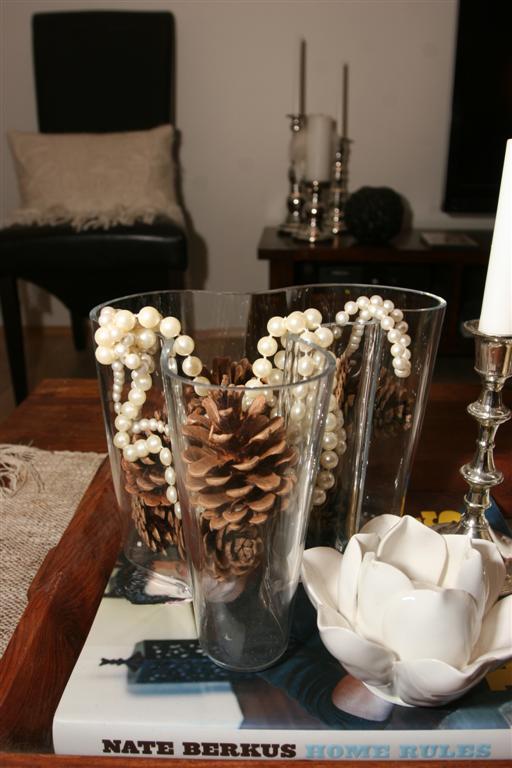 ..ein af mínum dyggustu lesendum (hey Bryndís 😉 ) var að spyrja mig um hvað væri hægt að setja í tóma glervasa.  Sérstaklega þar sem að maður er víst ekki alltaf svo lánsamur að vera með afskorin blóm.  Það er náttúrulega hægt að vera með vatn og flotkerti eða eitthvað svoleiðis en vatnið verður svo fljótt leiðinlegt þannig að ég er bara með vatn í vösunum rétt yfir veislur eða við spes tilefni.