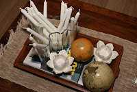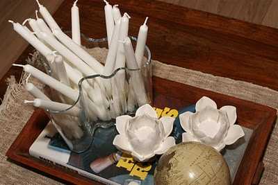 Hér eru líka hugmyndir sem að áður hafa komið.  Síðan er hægt að setja hnetur, korktappa, lime, skrautsteina og láta sprittkerti standa á þeim.