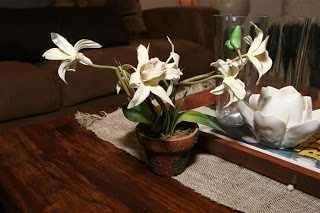 ….hér er lítil græn lengja (fæst svipað í Blómavali) og síðan er búið að taka eitt blóm af gerviorkídeu