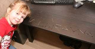 …og litli snillingurinn minn stafar allt þessa dagana, og notar til þess hvað sem hún finnur – þar á meðal spennur móður sinnar sem voru skildar eftir í reiðuleysi 😉