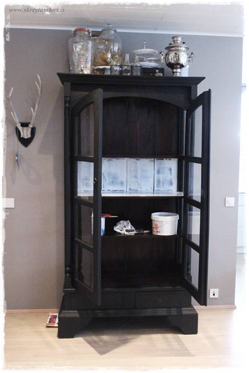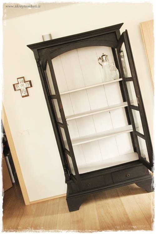Af þeim sökum er ég búin að horfa á grey glerskápinn okkar í langan tíma með löngunaraugum og svo varð úr að ég ákvað að drífa mig í þessu – til hvers að bíða og bíða, ef manni langar enn eftir 2 ár – þá er þetta löööööngu tímabært að mínu mati.