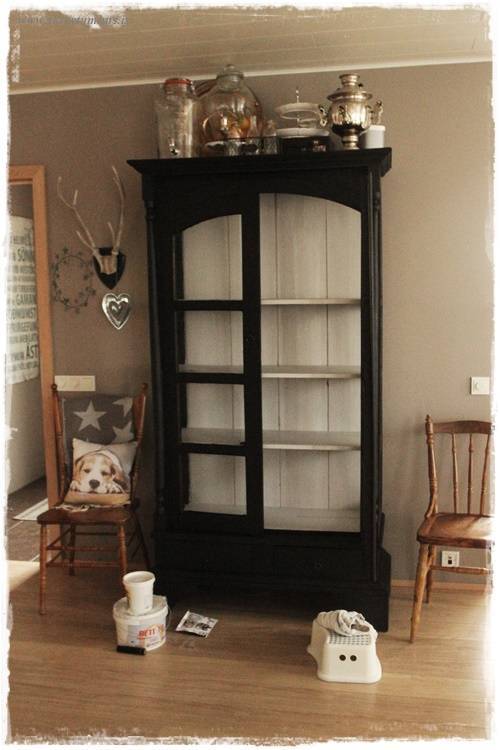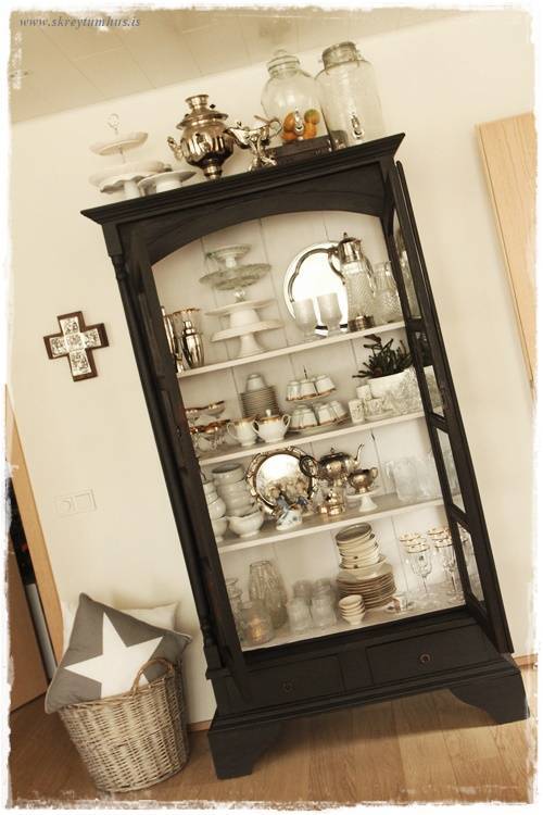 Ég var að skoða hérna í tölvunni hjá mér gamlar innblástursmyndir – þið munið kannski eins og maður gerði hérna fyrir tíma Pinterest – þegar maður var að save-a myndir í möppur og skoða bara í ró og næði. Þær eru allar smekkfullar af svörtum skápum. Mig hefur dreymt um svartan skáp með glerhurðum, og hvítann að innan.