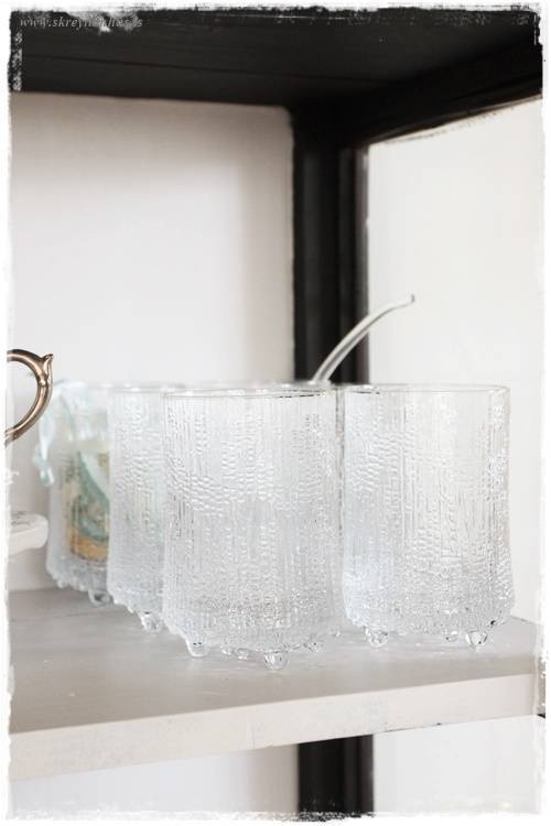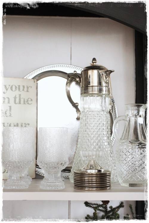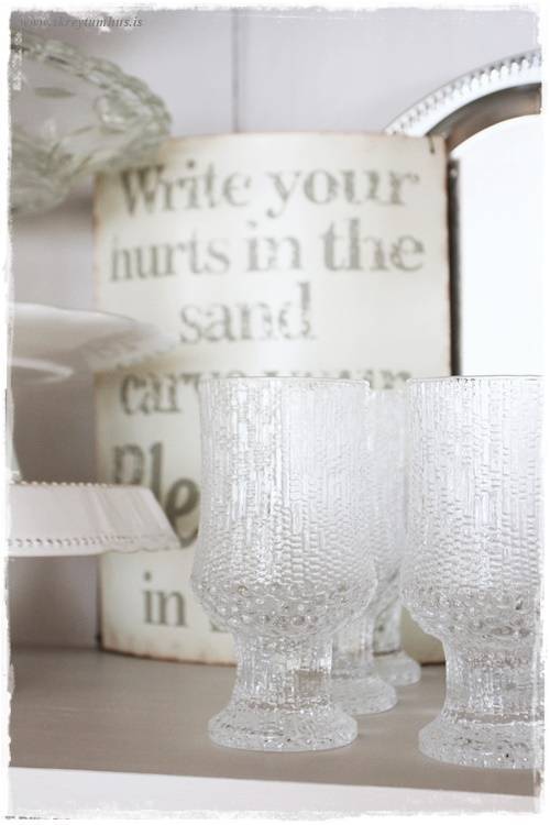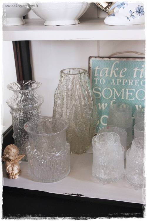 …og þarna lifa allir í satt og samlyndi – karafla og kanna úr Góða og Iittalaglösin mín fögru, ásamt bakka úr Rúmfó í baksýn – sko, allir vinir…
