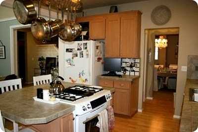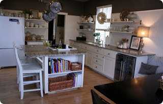 Þau fluttu síðan inn og betrumbættu aðeins rýmið.  Settu stórann pottarekka í loftið, stóra krítartöflu á vegginn og bara hina og þessa smá muni.