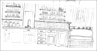 En þegar fram liðu stundir þá fundu þau að þetta var bara ekki að gera sig fyrir þai.  Þannig að eftir að hafa skoðað myndir á netinu og í blöðum þá gerðu þau þessa teikningu af draumaeldhúsinu, þannig að sama innréttingin fékk að halda sér en var gerð að “þeirra”.