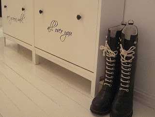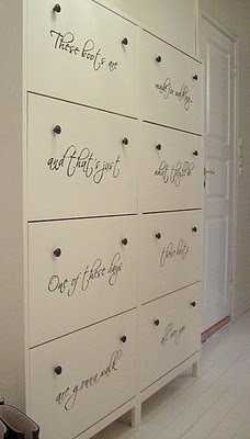vá hvað þetta er flott hugmynd!! allt annað að sjá þessa sniðugu skóskápa með textanum á!