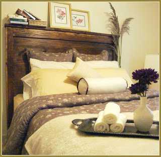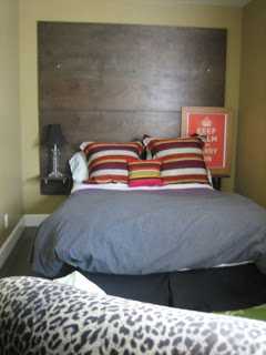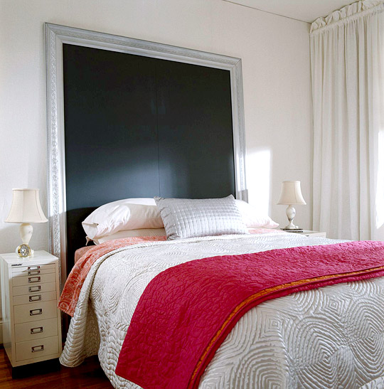 Það er ótrúlegt hvað réttur rúmgafl getur gert mikið fyrir svefnherbergið.  Ég fann minn “gafl” í Pier og hengdi fyrir ofan rúm.  Þannig að það er bara spurning um að hafa opin augun og leita eftir því að sem þér líkar við.