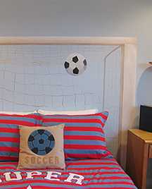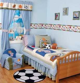 Það sem að ég myndi persónulega ekki gera, er að fara út og kaupa boltaveggfóðursborða og bara allt með mynd af fótbolta sem að ég finn. Frekar að gera hlýlegt og fallegt strákaherbergi og ná síðan að pota inn einum og einum hlut með áhugamálinu. Þannig að það sjáist hvað heillar en að það steinroti mann ekki – skiljið þið mig? 🙂