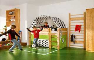 fékk fyrirspurn um hvernig ég myndi gera boltaherbergi fyrir unga menn sem hafa mikinn áhuga á fótbolta.