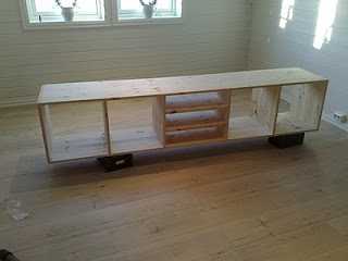 Síðan var bara gengið frá og svo farið í að slá upp timbri í kringum og gera þessa líka fínu, gammel, lokrekkju.