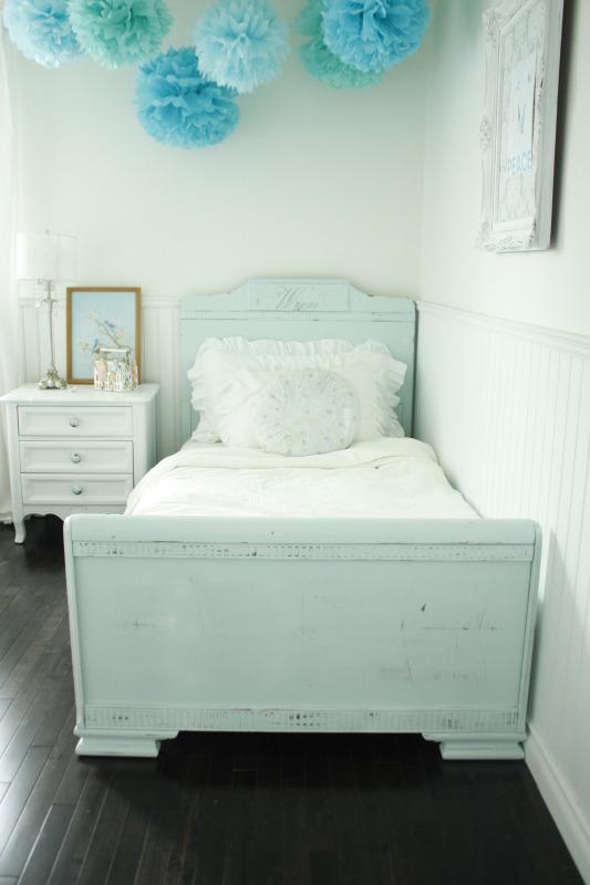 Ég á einmitt svona antik skáp og mig langar svo að mála hann hvítann. Bláu dúskarnir eru rosalega flottir. Ætli sé eitthvað mál að búa til svoleiðis?