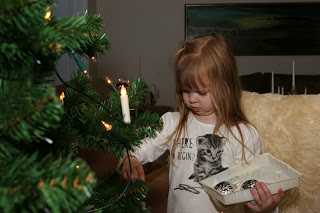 Þessi “gamaldags” sería með kertaperunum var keypt í Blómaval í fyrra eða hitt í fyrra. Hún var meira að segja mjög ódýr, kostaði bara eitthvað um 500kr pakkinn. Þetta var eitthvað sem að mig hefur alltaf langað í því að það var svona sería á trénu heima hjá mér þegar ég var krakki 🙂