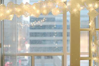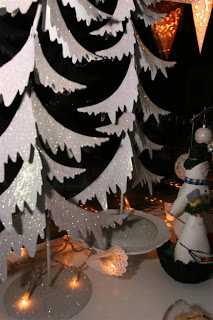 En þetta er sem sé komið upp hjá mér núna. Bætti þessu aðeins í seríuna í eldhúsglugganum og í stóra gluggann í borðstofunni. Setti ekki á hverja peru heldur bara svona eina og eina eftir vild. Þetta gefur skemmtilega skugga og brýtur aðeins upp þessar týpísku seríur. Auðvelt smáaðgerð!