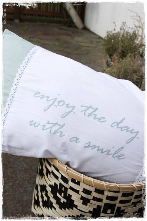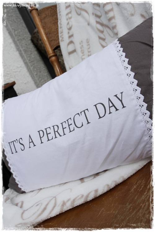 …ég fór einmitt í vikunni í Rúmfó á Korputorgi og rak þar augun í þessa dásemdar púða – og ég sem var í púðabanni – kolféll!