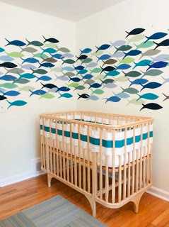 Einfalt er að yfirfæra þessa hugmynd og nota annað mótíf á veggina, fiðrildi, blóm eða bara hvað sem er…