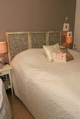 “Gaflinn” á rúminu eru þrjú svona Ramma-vír-listaverk, sem að keypt voru í Pier. Ég var ekki sátt við að hafa rúmið hauslaust og ætlaði alltaf að útbúa gafl. En þess í stað þá notaði ég þessa lausn og er ágætlega sátt við hana. Þetta var líka ekkert dýr og því auðvelt að breyta til í framtíðinni og alltaf hægt að nota þessa skrautramma annars staðar þá. Mér fannst líka koma smá svona “shabby sheik”-fílingur án þess að óverdósa.