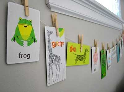 um daginn sýndi ég ykkur hvernig ég breytti hvítum stöfum með skrapp-pappír (rosalega mikið af P-um í þessu). Ég fann frá snillingunum sem eru með Young House Love þetta smá verkefni. Eins og áður hefur verið sýnt þá er það kjörið að nota listaverkin hjá börnunum okkar til þess að skreyta herbergin þeirra, t.d. með því að hengja þau upp á band á vegg.