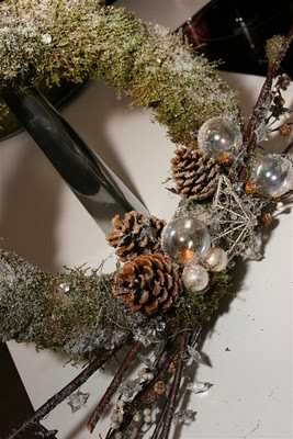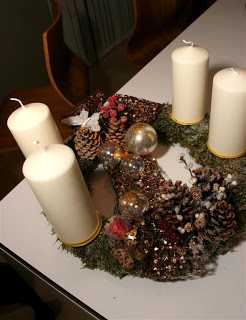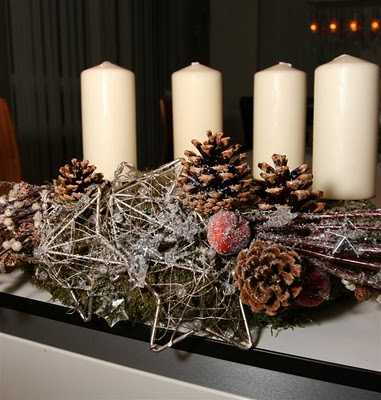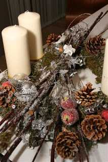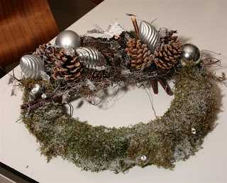 Krans sem var ætlaður ofan á hillu, þannig að mest sést í hliðina sem að skreytt er – snilldarhugmynd, TM. Svandís 🙂