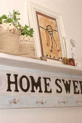 Þess vegna sendi ég bóndann upp á háaloft að leita að Home sweet home-kántríhillunni góðu.