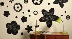 Krítarmálning er líka alltaf vinsæl og sniðug.  Spurning er hvort að krílið fatti að það megi þá ekki korta á alla veggi heimilisins ef að einn veggur er leyfilegur með krítarmálningu?  Þá er líka sniðugt að nota spónarplötu og saga hana í það form sem hugurinn girnist.  Í stelpuherbergi er til dæmis sætt að vera með hjörtu í nokkrum stærðum sem hægt er að mála, nú eða í strákabergi gætu það verið hringir/boltar sem að skoppa um veggi og hægt er að lita með krítum.  Síðan er hægt að vera með bara eitt stórt form, stóran svepp, stóra lest eða stórt blóm – hvað er skemmtilegast inn til barnsins?