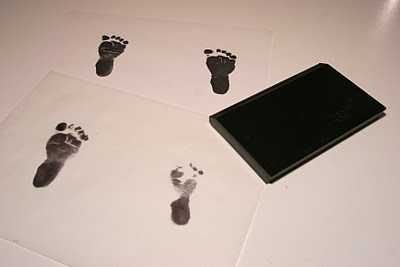 Það er um að gera þetta á nokkur blöð, hægt að setja eitt blað í ramma en annað í bók og svo bara láta ímyndunaraflið ráða.  Best er að passa að ýta fætinum frá tám og alveg aftur á hæl, til þess að ná alveg fótafarinu