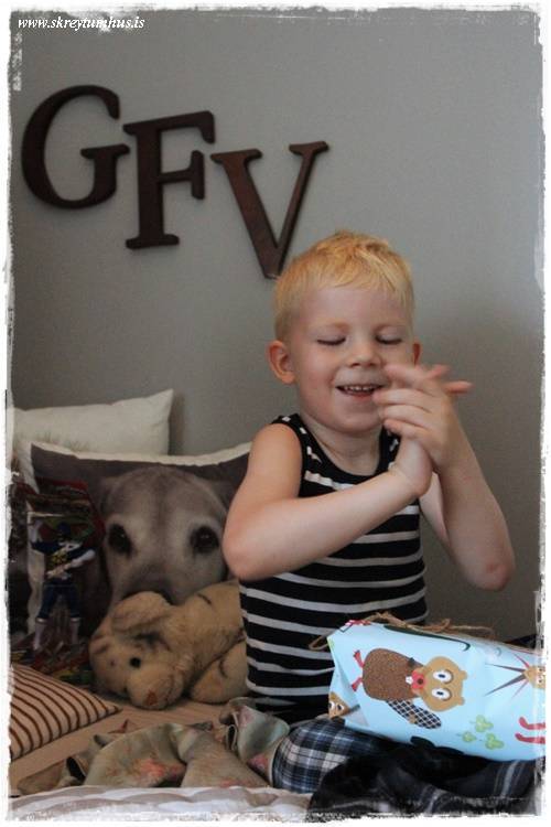 …og hann tók upp á því sjálfur að knúsa og þakka fyrir hvern einasta pakka um leið og hann var búinn að opna…