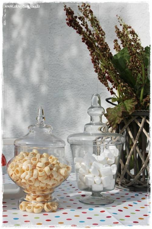 …rörin voru líka geymd í glerkrukku, fram að notkum og svo voru auðvitað vínber fyrir krakkana – því að þau elska að fá sér svoleiðis…